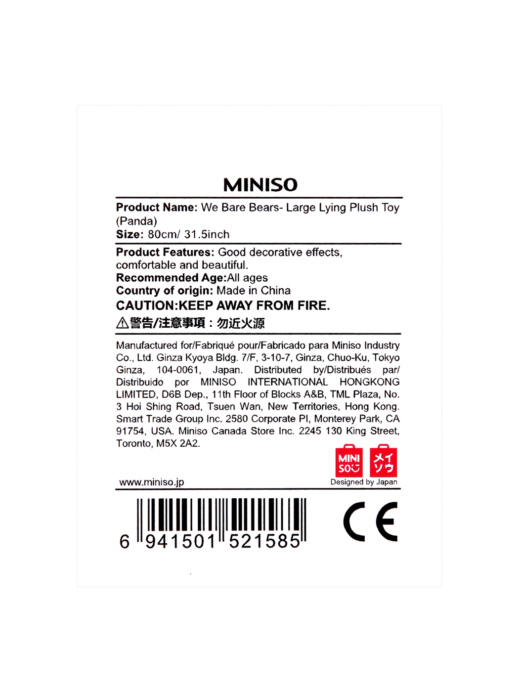 Pehme mänguasi We Bare Bears Panda 80cm