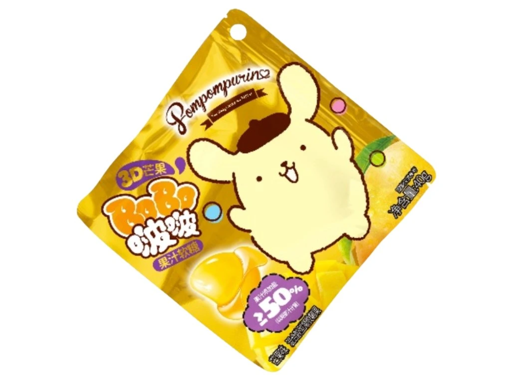 Armsas Pompompurini teemapakendis pehmed ja mahlased 3D-mangokujulised marmelaadikommid. Rikkaliku troopilise maitsega, lapsesõbralik ja silmatorkava kujundusega maius. ✨